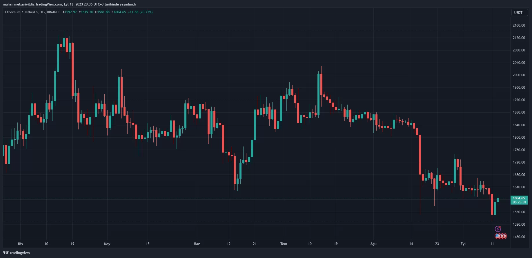Ethereum pazartesi günü, 6 ayın en düşük seviyesi olan 1.531 dolar seviyelerine iğne attı. Ancak kısa bir süre içerisinde kendini toparlayarak 1.626 dolar seviyesine kadar tırmandı.