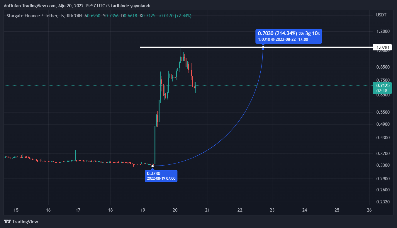 Her ne kadar bu listeleme BTC’nin düşüş döneminde geldiği için uzun sürmeyeceği düşünülse de, STG tarihinin en büyük yükselişlerinden bir tanesini yaşayarak 1 günde yüzde 214 oranında değer kazandı.