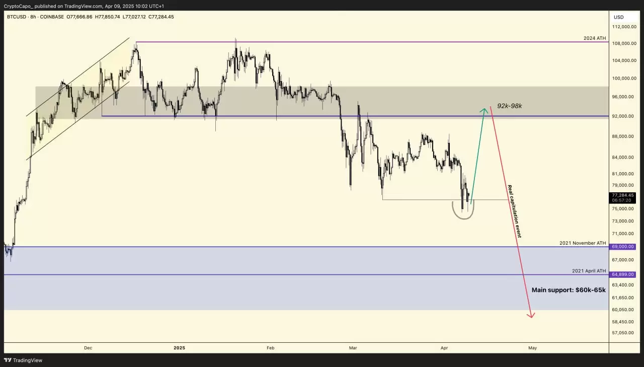 Başarılı kripto para analistlerinden bir tanesi olan Crypto Capo, geçtiğimiz süreçte 75 bin dolar bölgesinin dip olacağını ve BTC’nin 92 bin – 98 bin dolar aralığına yükseleceğini söylemişti.