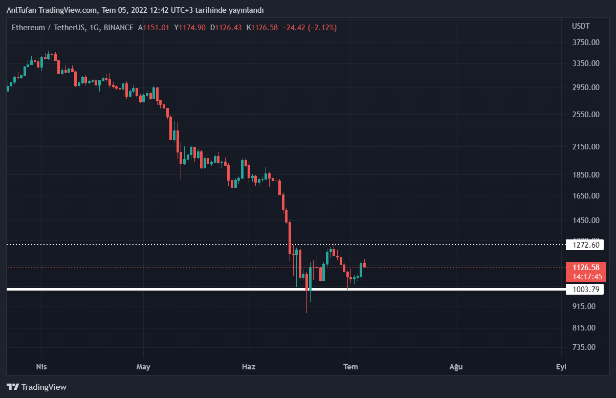 İlerleyen saatlerde düşüşlerin devam etmesi durumunda 1000 dolar destek seviyesine kadar gerilemesi beklenen ETH, bu seviyenin altına sarkması halinde ise çok daha sert düşüşler yaşayabilir.