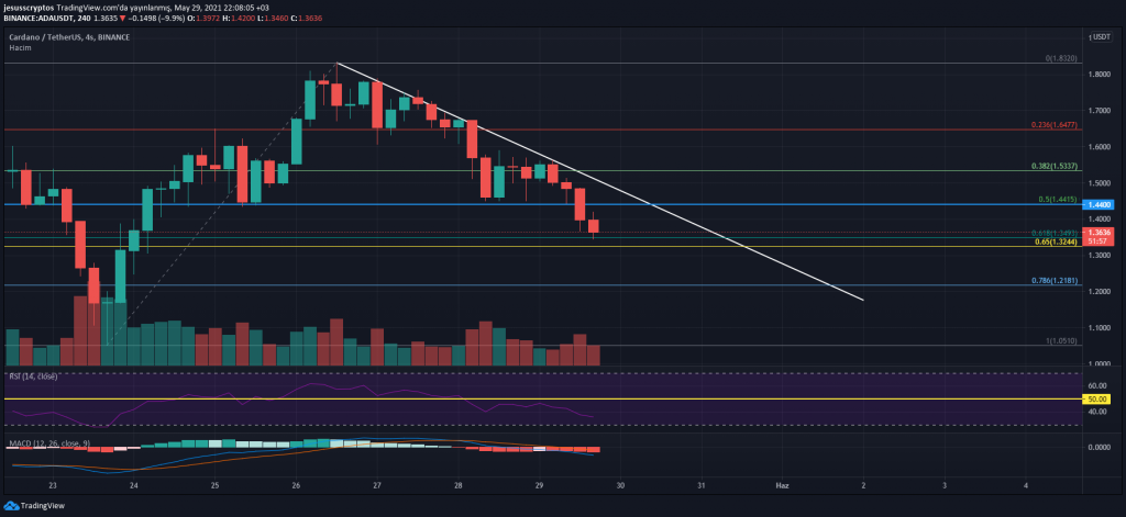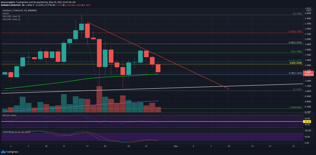 ADA yatırımcılarının dikkatle takip ettiği 1.32 dolar seviyesi, birçok yatırımcının altındaki mum kapanışıyla stop olma stratejisini izleyeceği bir nokta olarak görülüyor. Teknik tarafındaysa MA100 seviyesinin kaybedilmesinin fiyatta bir önceki dip olan 1.01 dolara kadar bir düşüşü getirmesi bekleniyor.