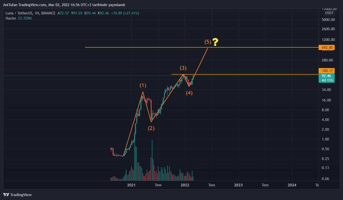 An itibariyle 91 dolar seviyelerinde bulunan LUNA, 100 dolar seviyelerinde bulunan ATH direncine çok yakın bir konumda yer alıyor.