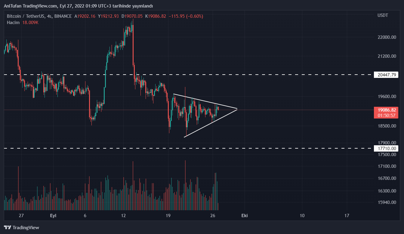 Bitcoin’de en geç kırılımın 29 Eylül TSİ 23.00’da gerçekleşeceği bilinmekte. Üçgen formasyonları sıkışan bir patern olduğu için yatırımcılara patlama konusunda belirli ipuçları verebilmekte.
