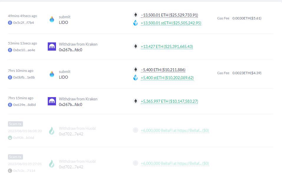 “Bu cüzdan da toplam 18900 adet ETH’yi Lido’da stake etti.”