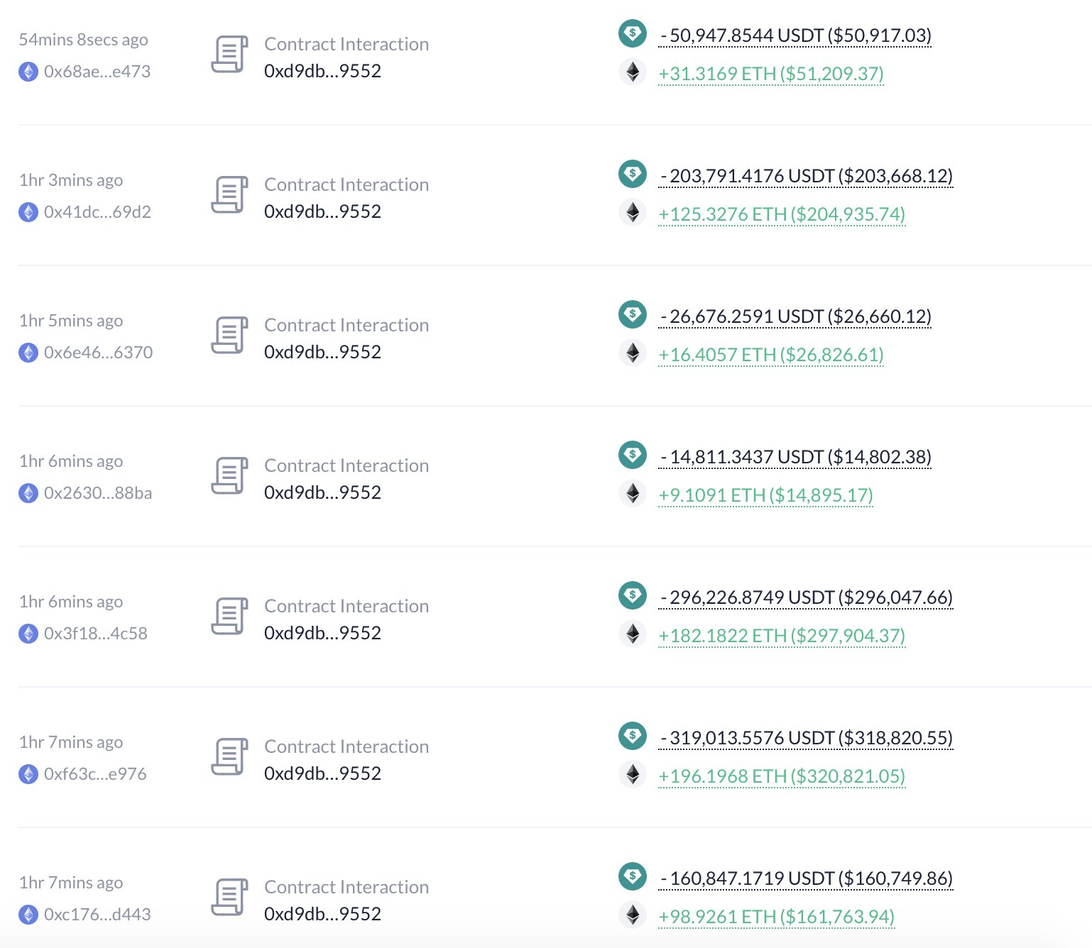 Başarılı bir veri sağlayıcısı olan Look On-Chain’in aktardığı bilgilere göre 1INCH Yatırım Fonu bugün Binance borsası üzerinden toplamda 3.076 adet ETH satın alımı gerçekleştirdi.