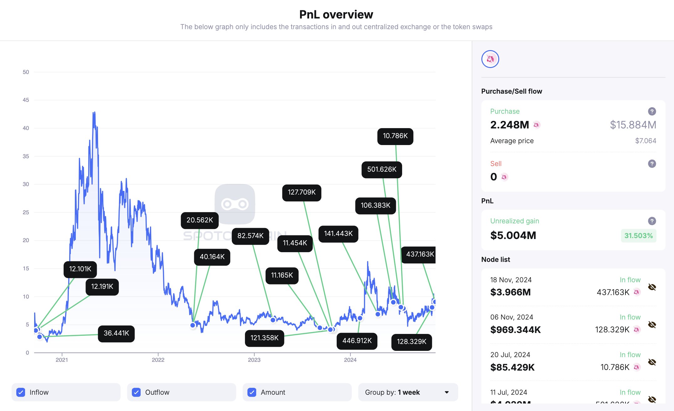 Kısa bir süre önce başarılı zincir içi veri sağlayıcısı olan Spot On-Chain, 2016 yıllarında Ethereum (ETH) toplamaya başlayan bir balinanın şimdi ise DeFi projesi UNI‘ye yatırım yaptığını tespit etti.