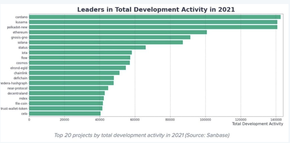 Ancak 2021 yılında kripto para birimleri arasında en çok geliştirilen ve kod yazılan kripto para, Bitcoin olmadı. Söz konusu kripto para, Charles Hoskinson‘ın Cardano‘su (ADA) oldu.