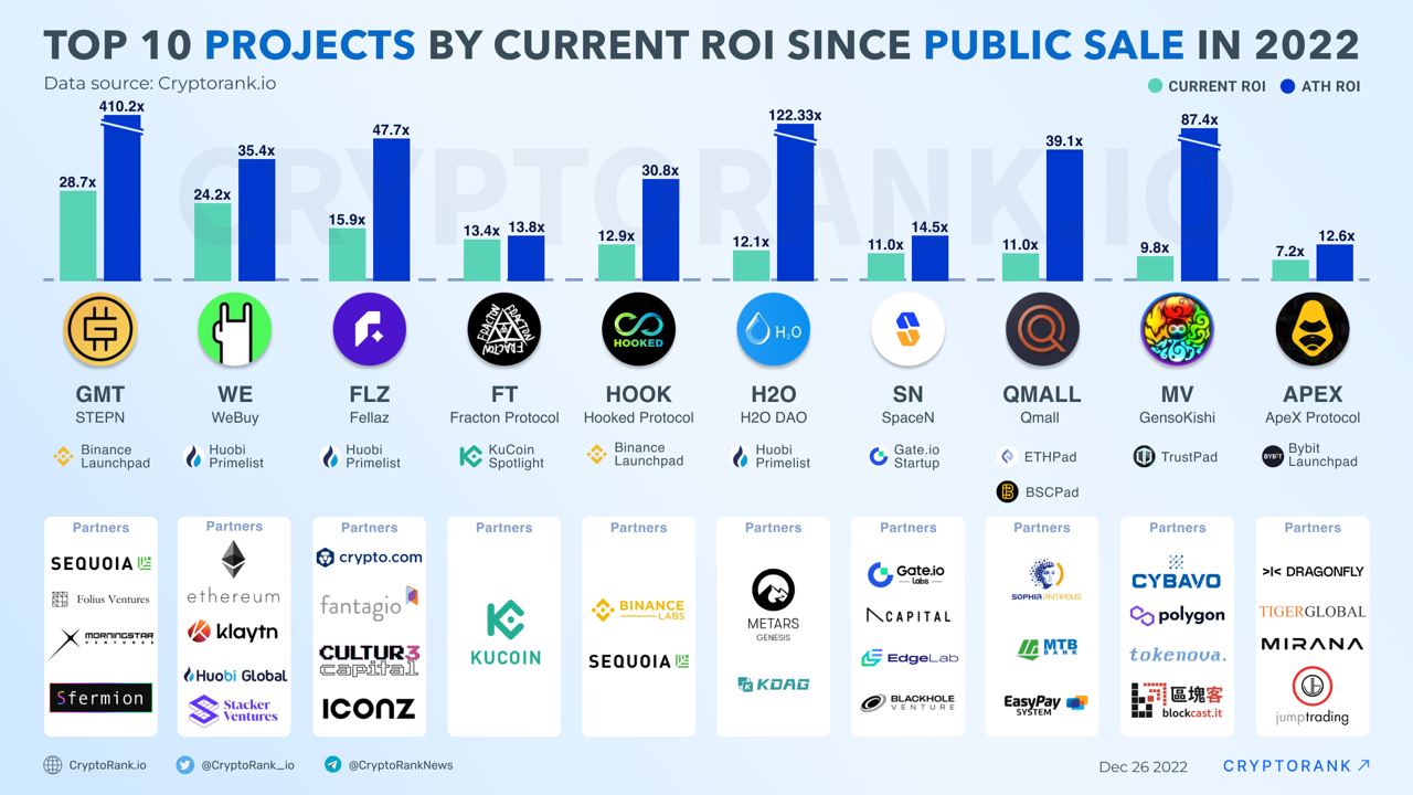 Listenin başında ise bir yürü-kazan projesi olan STEPN (GMT) yer almakta. Ön satışına Binance’in liderlik ettiği GMT, çıkışı ile birlikte değerini 410’a katlamayı başarmıştı.