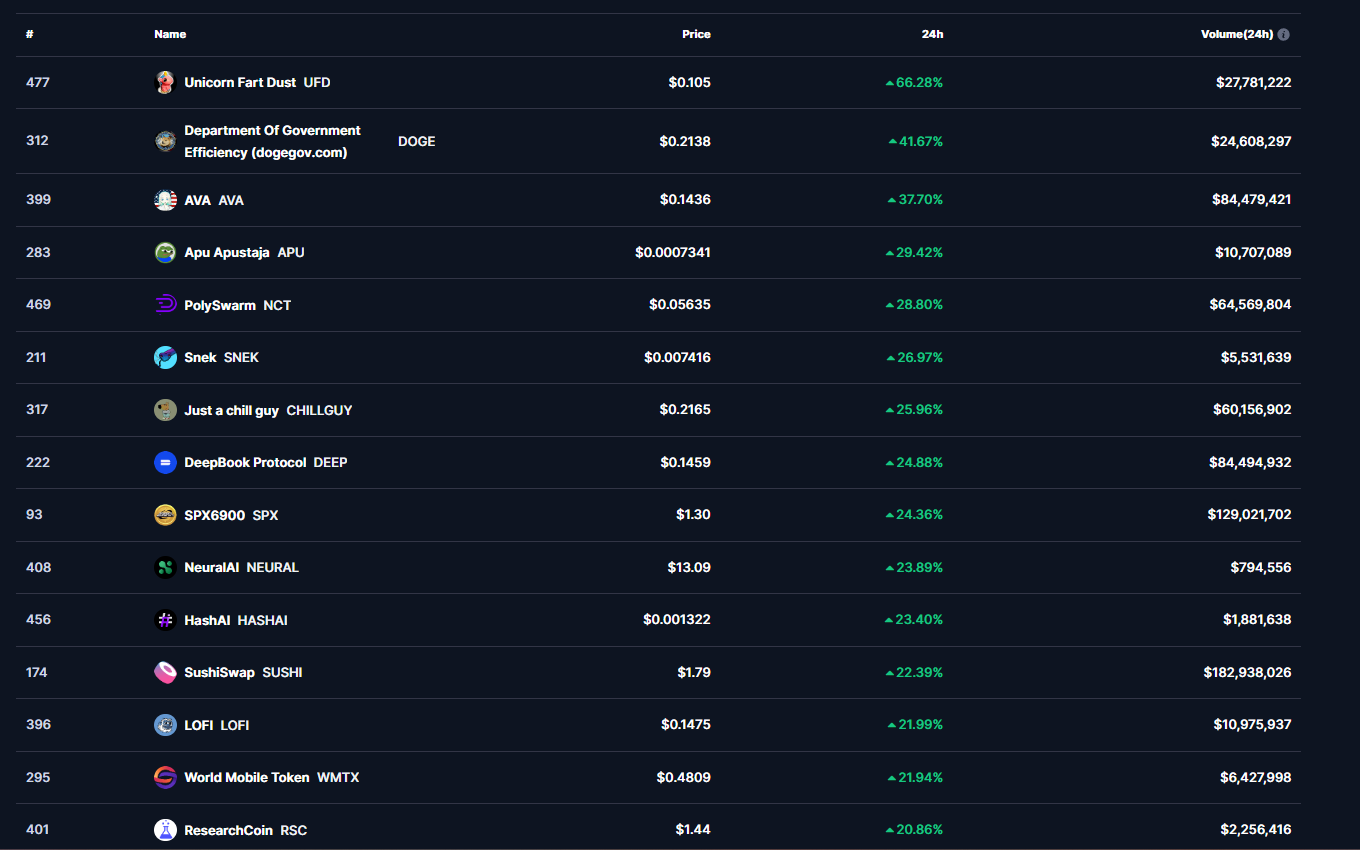 Hadi gelin bugünün en çok yükselen altcoin’lerine yakından göz atalım: