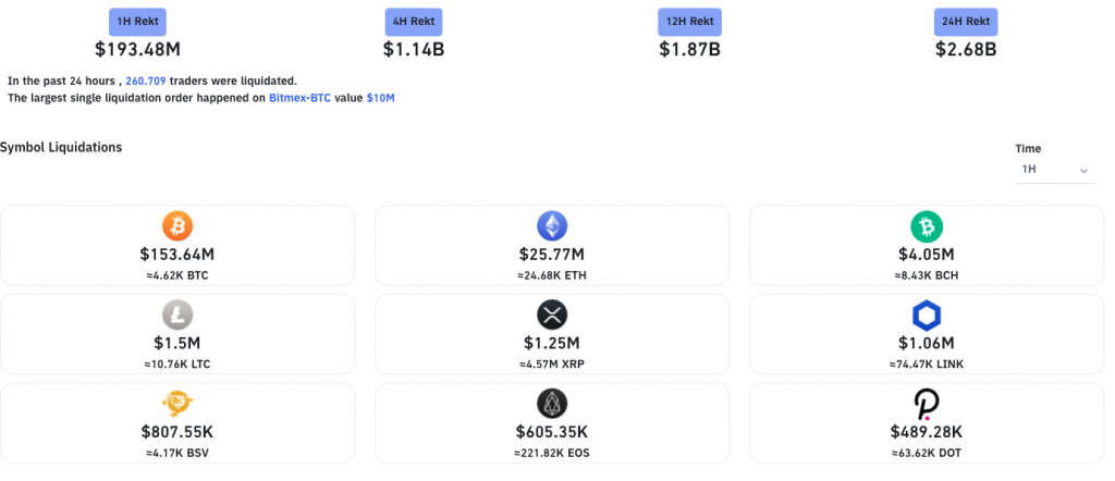 Spot piyasadan alım yapıp elinde hala BTC veya diğer kripto para birimlerinden tutanların hala yükseliş şansı olsa da kaldıraçlı işlem yapan binlerce yatırımcının milyarlarca dolarlık kayıp yaşadığı görülmekte. Bybt tarafından aktarılan verilere göre son 24 saat içerisindeki likidasyonların miktarı 2,68 milyar doların üzerine çıktı.