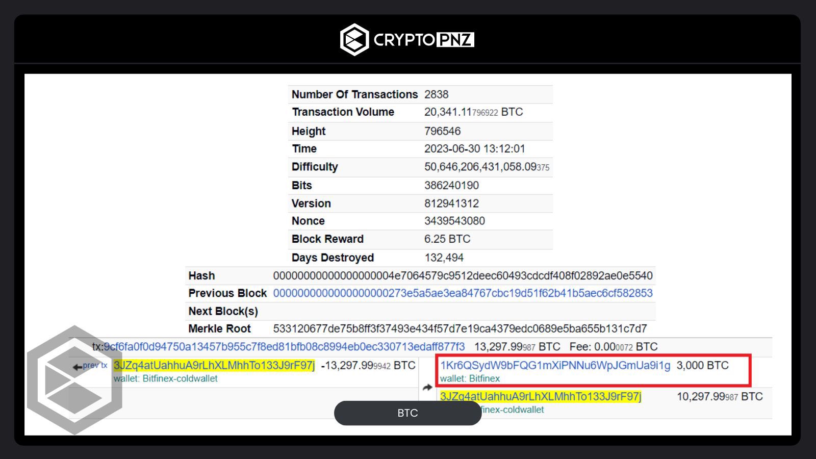 “Bitfinex borsasına ait bir soğuk cüzdandan TSİ 13:12’de 3.000 adet BTC yine Bitfinex’e ait borsa cüzdanına transfer edildi.”