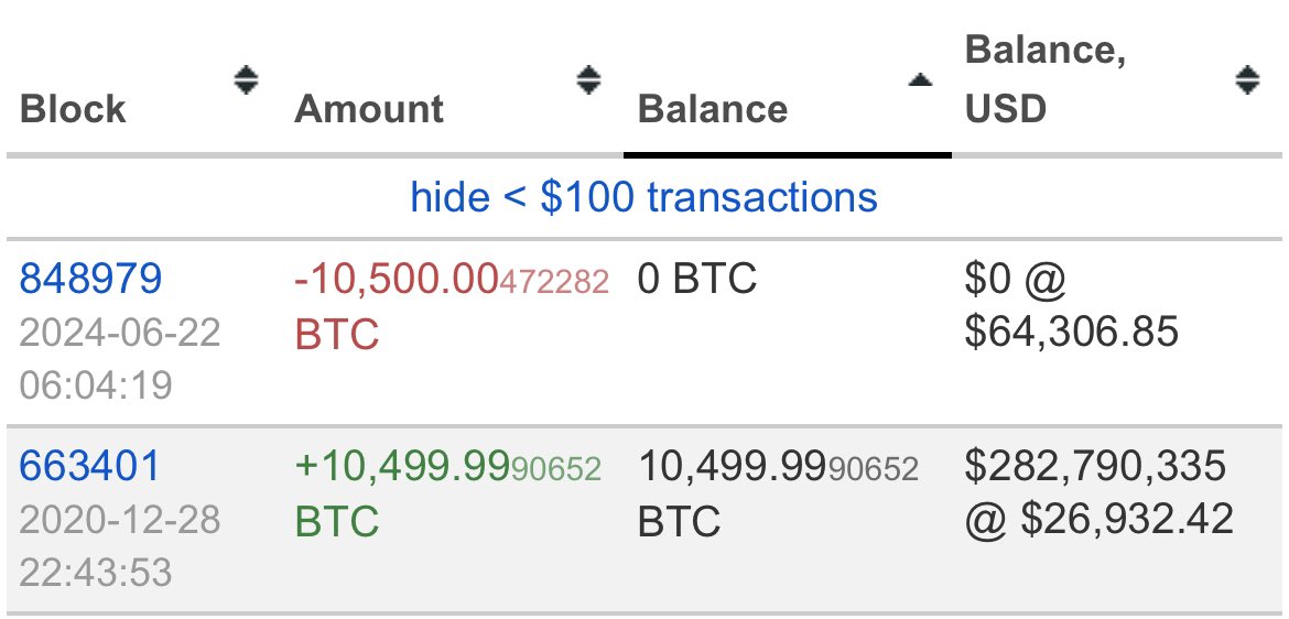 “2020 yılından beri hareket etmeyen 10,500 adet Bitcoin (BTC), yeni açılmış bir cüzdana taşındı. Bu kripto yatırımcısı, daha önce benzer taşınmayı 2019 yılında yapmış.
