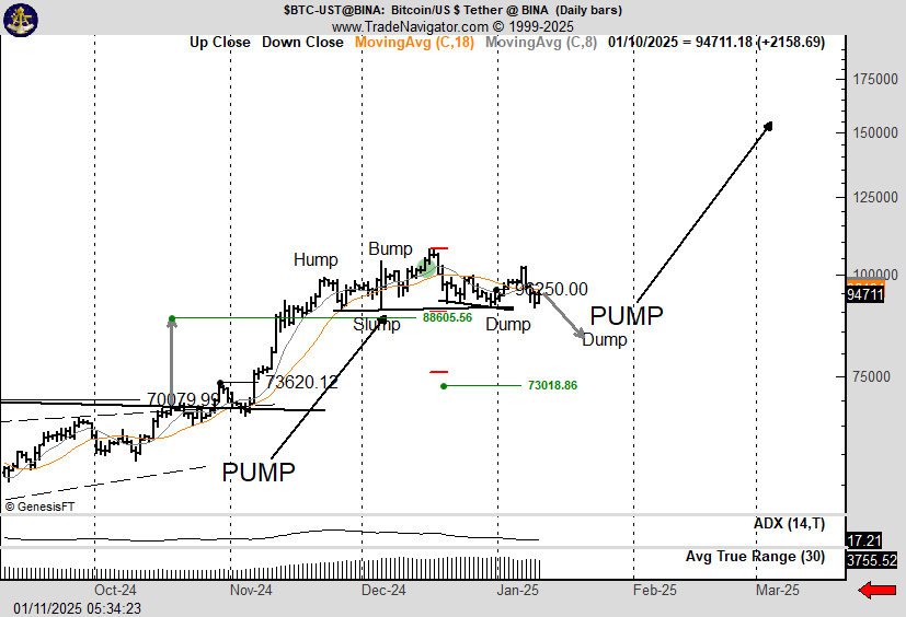 Peter Brandt’ın X/Twitter hesabı üzerinden paylaştığı Bitcoin grafiğini incelediğimizde, olası senaryonun gerçek olması halinde BTC ilk etapta ortalama 80 bin dolara kadar gerileyecek ve ardından 150 bin dolara kadar sert yükselişler yaşayacak.