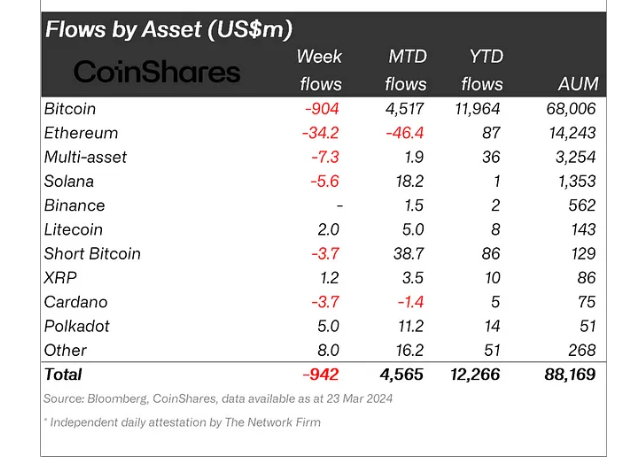 Bu para çıkışının büyük bir kısmı lider kripto para birimi Bitcoin (BTC) fonlarında gerçekleşse de, bazı altcoin fonlarının da para kaybettiği görüldü.