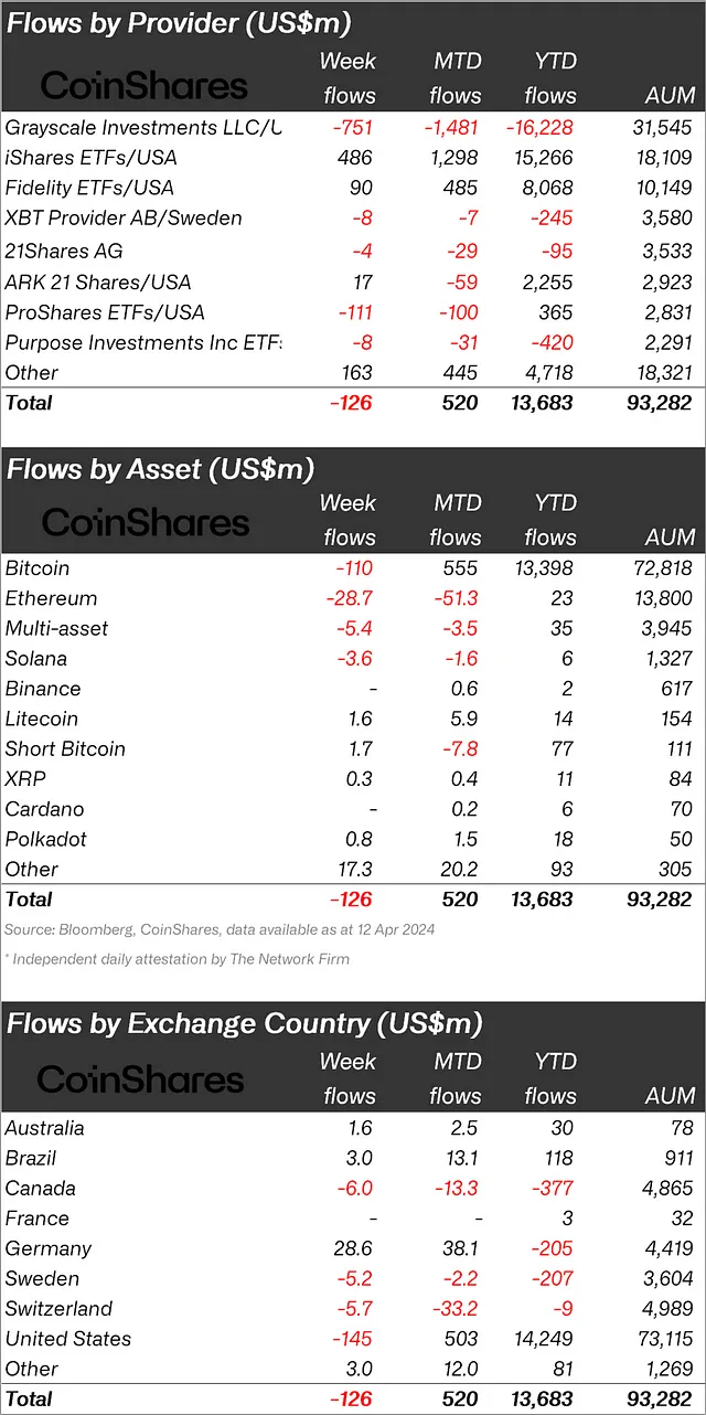 Başarılı bir analitik şirketi olan CoinShares’in son raporuna göre kurumsal kripto para fonlarından geçtiğimiz hafta para çıkışı oldu. 12 Nisan tarihine kadar kurumsal fonları kapsayan bu rapora göre kripto fonlarından 126 milyon dolarlık bir çekim yapıldı.
