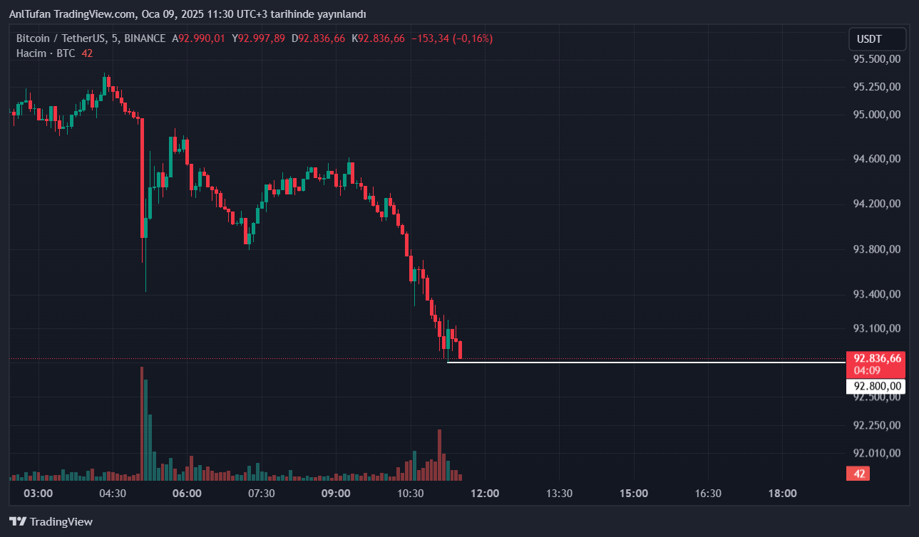 Bu son gelen haberler ile birlikte Bitcoin’deki (BTC) düşüşlerin daha da alevlendiği görüldü. Kısa bir süre önce 92.800 dolara gerileyen BTC, halen satış baskısını kırmayı başaramamış durumda.