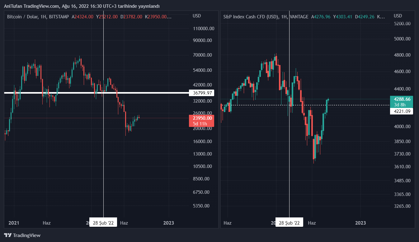 Her ne kadar SP 500 Şubat ayındaki 4300 dolar seviyelerine ulaşmış olsa da, Bitcoin halen beklenen yükselişe yaşayamadı. Lider kripto para biriminin de ilerleyen süreçte Şubat ayındaki seviyelerine doğru hamleler yapması bekleniyor.