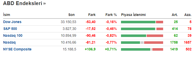 ABD borsalarının açılışlarının ardından hızlı bir şekilde düşüşe geçtiği gözlenmekte. Dow Jones her ne kadar haftaya olumlu başlasa da şuan itibariyle o dahi kırmızıya döndü.