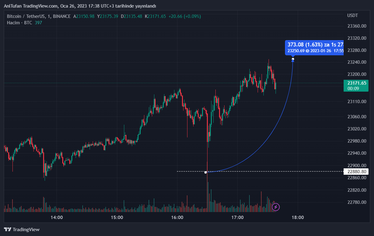 Haberimizin yazıldığı esnada 23.160 dolar seviyelerinden işlem gören lider kripto para birimi Bitcoin (BTC), son saatlerde tekrardan yükselişe geçmiş durumda.