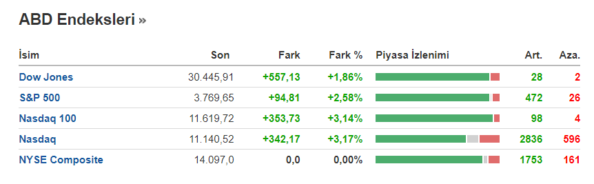 ABD borsa endekslerinin açılış oranlarının ise şu şekilde olması kripto para yatırımcılarının da dikkat çekti: