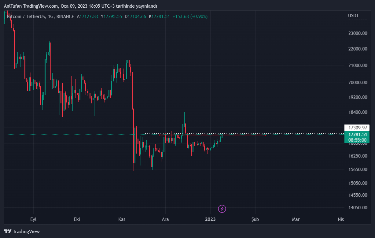 Lider kripto para birimi Bitcoin (BTC) her ne kadar yükseliş yaşıyor olsa da, halen 17.300 dolar direncini hacimli ve volatil bir şekilde kırmayı başaramamış durumda.