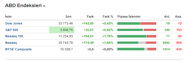 Geçtiğimiz dakikalarda ise ABD borsaları haftalık açılışlarını gerçekleştirdi. Yükseliş ile açılan borsalar, ABD dolar endeksinin (DXY) düşüşe geçtiği bugünde, değer kazanıyor.