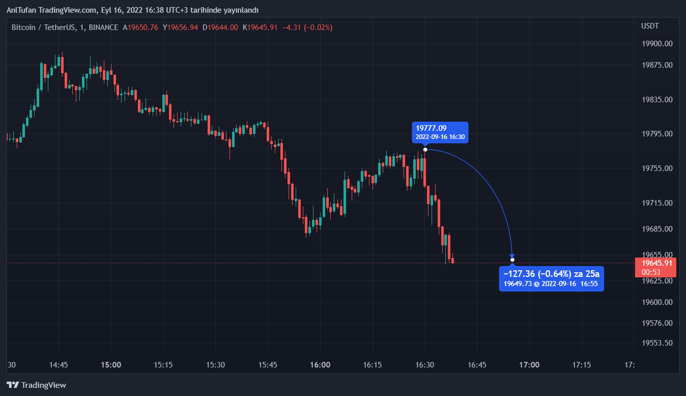 Günlük mumun yeşil olmasına rağmen borsaların hamleleri sonrası dakikalar içerisinde değer kaybetmeye başlayan BTC, ilerleyen saatlerde 19 bin dolar seviyelerine gerileyebilir gibi gözükmekte.