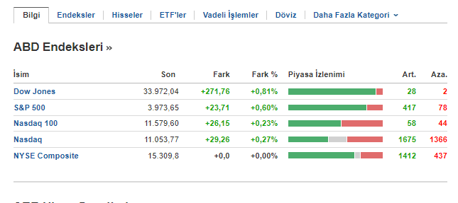 TSİ 17.30’da ise ABD borsalarının açıldığı görüldü. Bir süredir kripto para sektörünün aksine yükseliş yaşayan borsalar, bugünde değer kazanmaya devam etmekte.