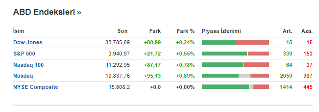 Geçtiğimiz saatlerde ise ABD borsaları günlük açılışlarını gerçekleştirdi. Alıcılı bir şekilde açılan borsalar, bugün itibariyle de değer kazanmaya devam etmekte.