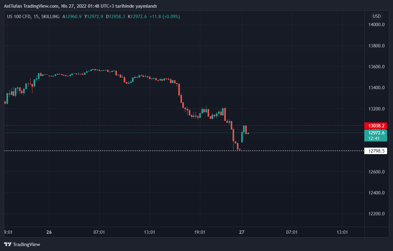 Yaşanan düşüşlerin ardından 12.798 dolar seviyesinde dip yapan Nasdaq, bu seviyeden yukarı yönlü bir tepki almayı başardı.