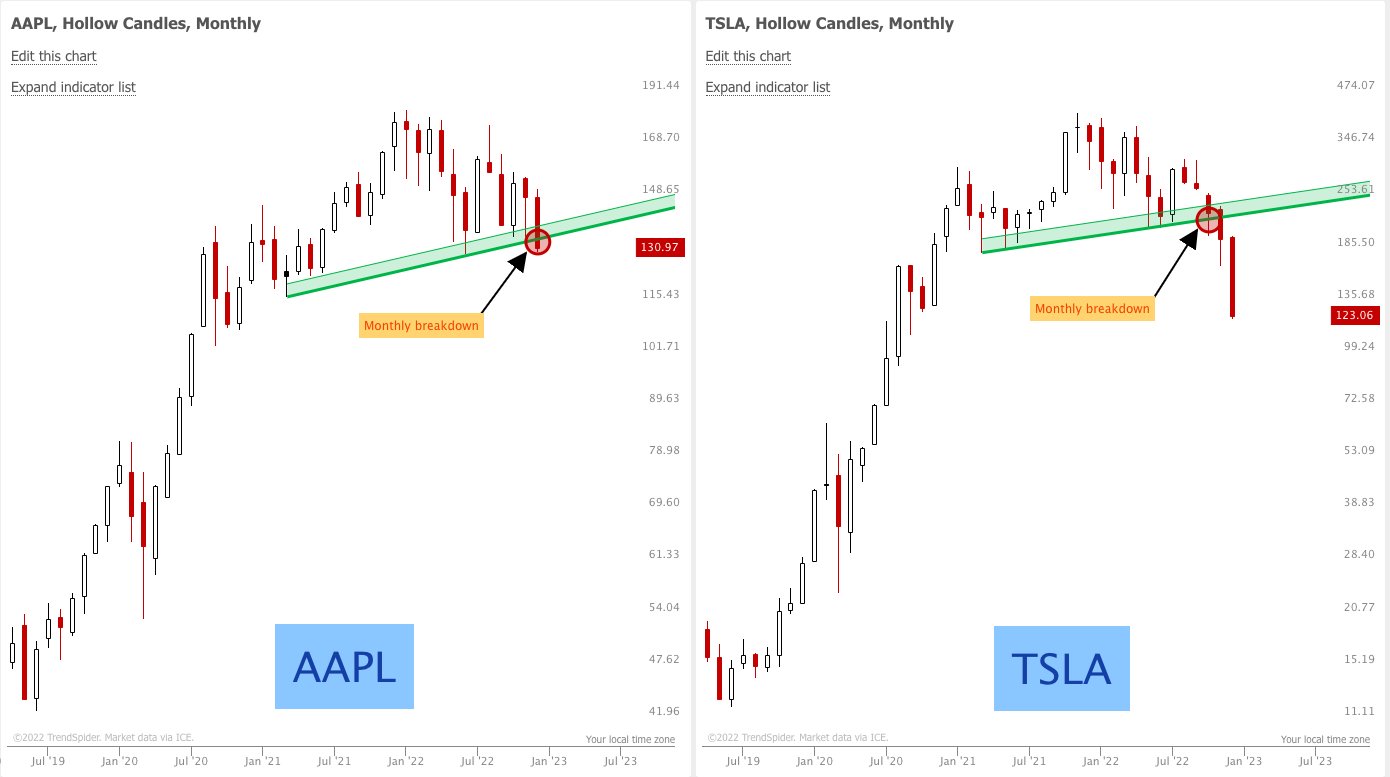 Apple ile Tesla hisselerini yan yana koyduğumuzda ise Apple’daki son durumun Tesla’nın çöküş yaşamamış günlerine çok benzediği görülebilmekte.