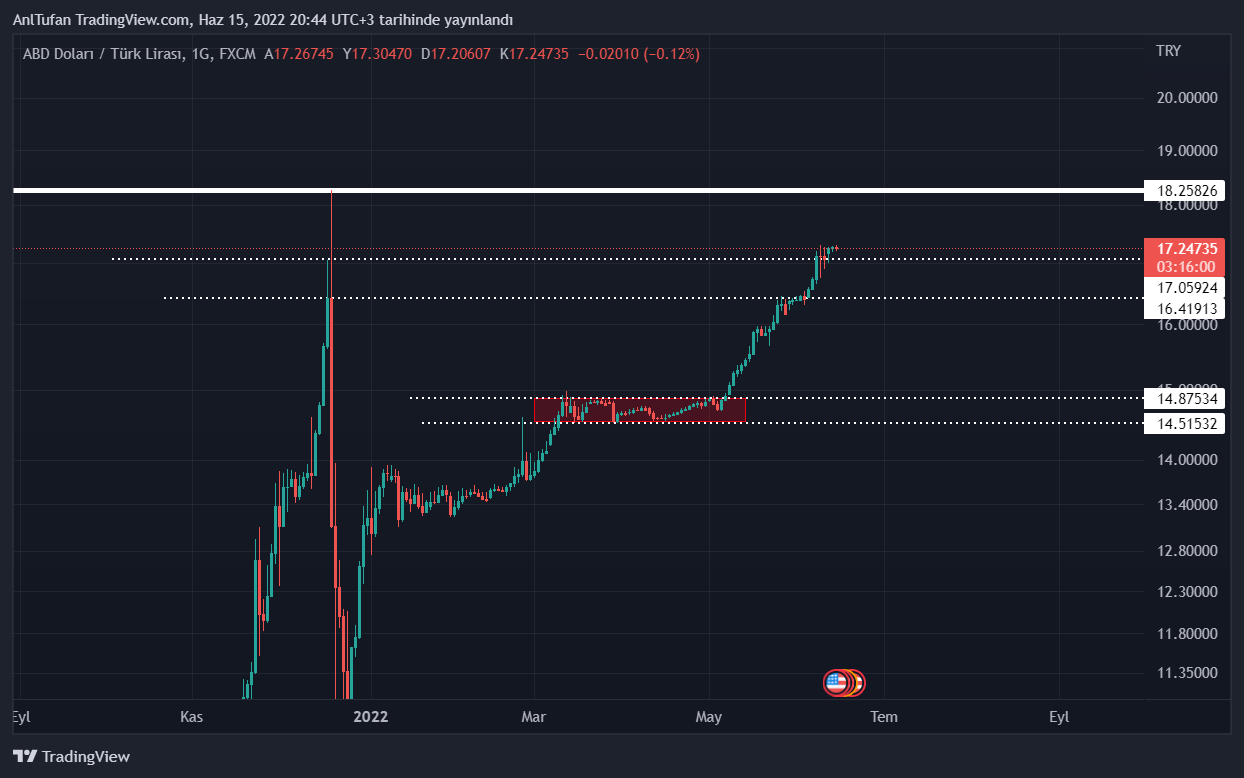 ABD dolarının faiz kararları sonrası 18.25 Türk lirası seviyesini kırması durumunda ise 20 Türk lirası psikolojik direncine ulaşması çok olası gözükmekte.
