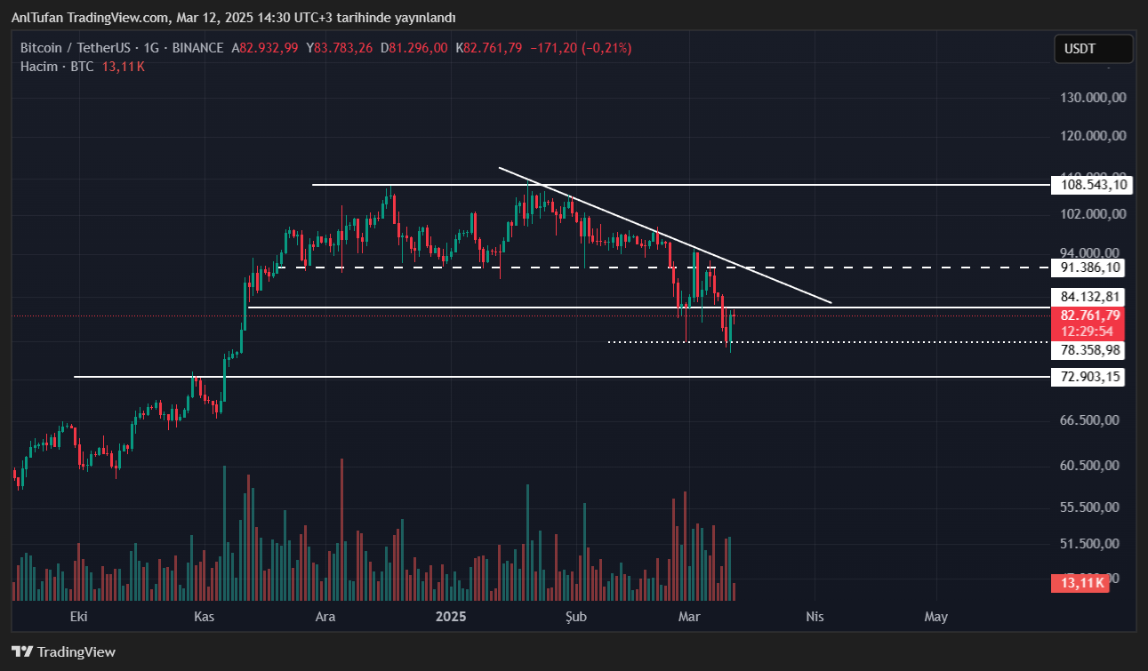 Önümüzdeki saatlerde ABD enflasyon verilerinin beklenti altı gelmesi BTC’nin 84 bin dolar direncini aşmasını sağlayabileceği gibi beklenti üstü açıklanması 78 bin dolara doğru bir düşüşü tetikleyebilir.