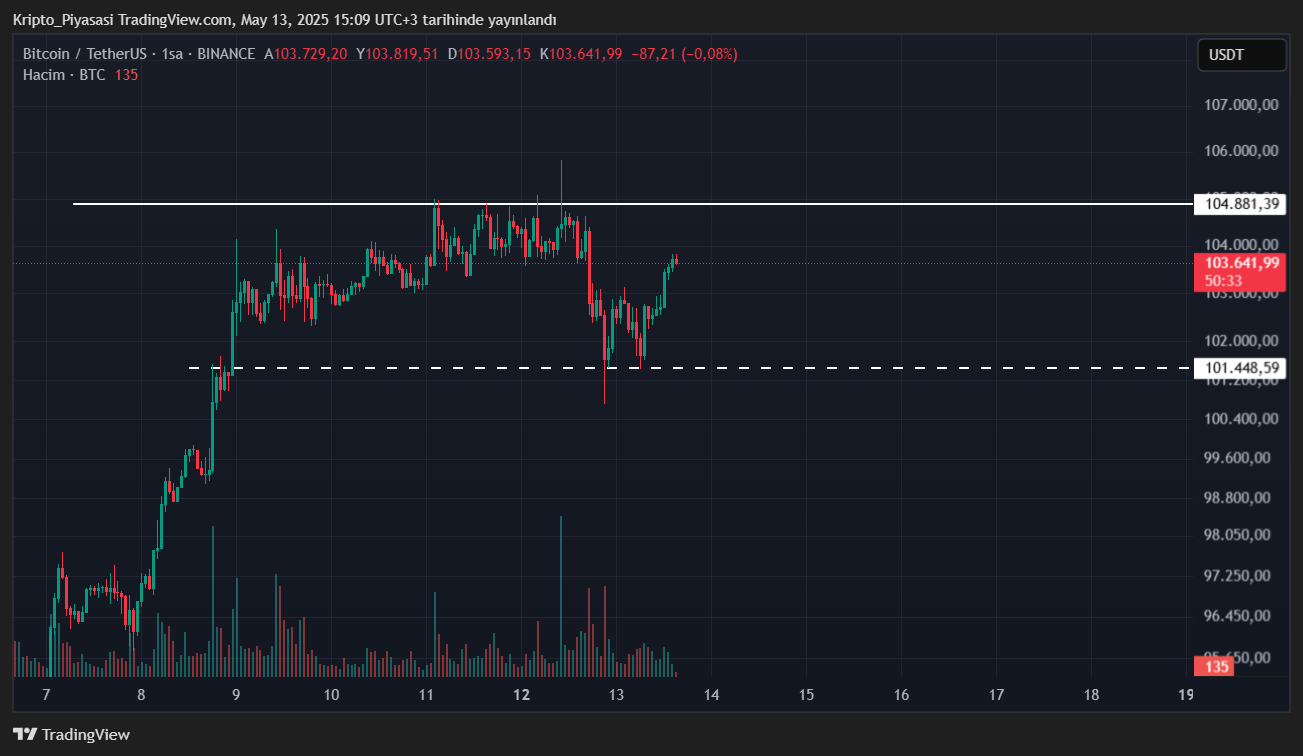 Bitcoin (BTC) haberimizin yazıldığı esnada 103.664 dolar seviyelerinden işlem görüyor. Bir süredir kritik direnç bölgesinin altında akümüle olan BTC, halen bir kırılım gerçekleştirmedi.