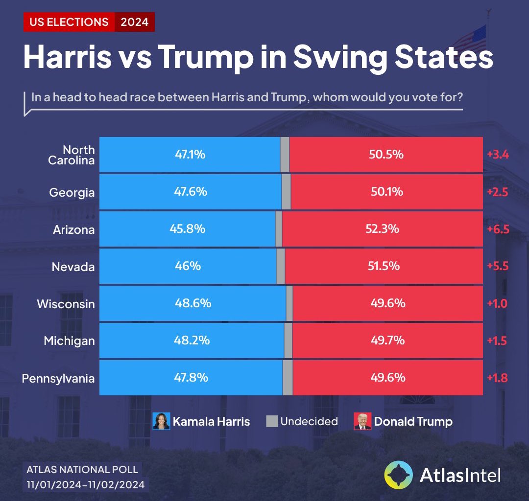 Hafta sonu özelinde bazı Demokrat yanlısı kaynaklar Iowa‘da (yoğun Trump destekçisi bir bölge) Kamala Harris’in öne geçtiğine dair raporlar yayınladı. Birçok anket şirketi ise sonrasında Donald Trump’ın Iowa’da güç kaybetmediğini belirtti.