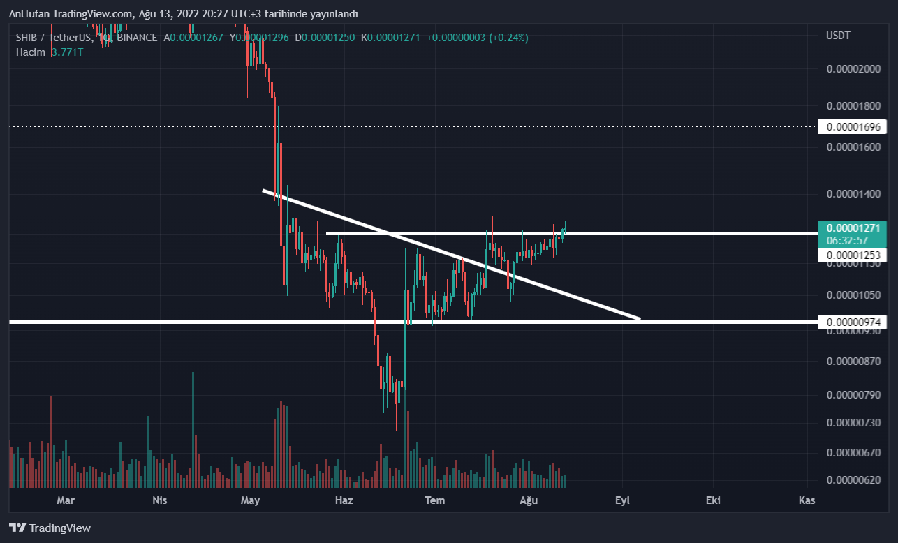 Haberimizin yazıldığı esnada 0.00001270 dolar seviyelerinde konumlanan SHIB, kritik direnç noktası olan 0.00001250’nin üzerine çıkmış durumda.