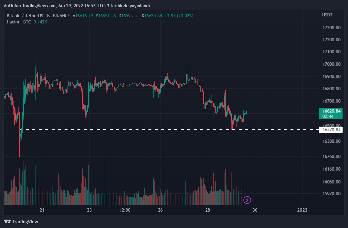 Bu veri sonrasında Bitcoin’in ufak bir düşüş yaşadığı görülse de, şuan itibariyle BTC tekrardan toparlanmış gibi gözükmekte. 16.470 dolar seviyelerinde dip yapan BTC, kademe kademe değer kazanıyor.
