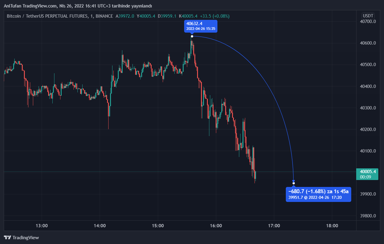 Haberimizin yazıldığı esnada 40.050 dolar seviyelerinde bulunan Bitcoin, verilerin açıklanmasının ardından 40.000 dolar desteğinin altına sarktı.