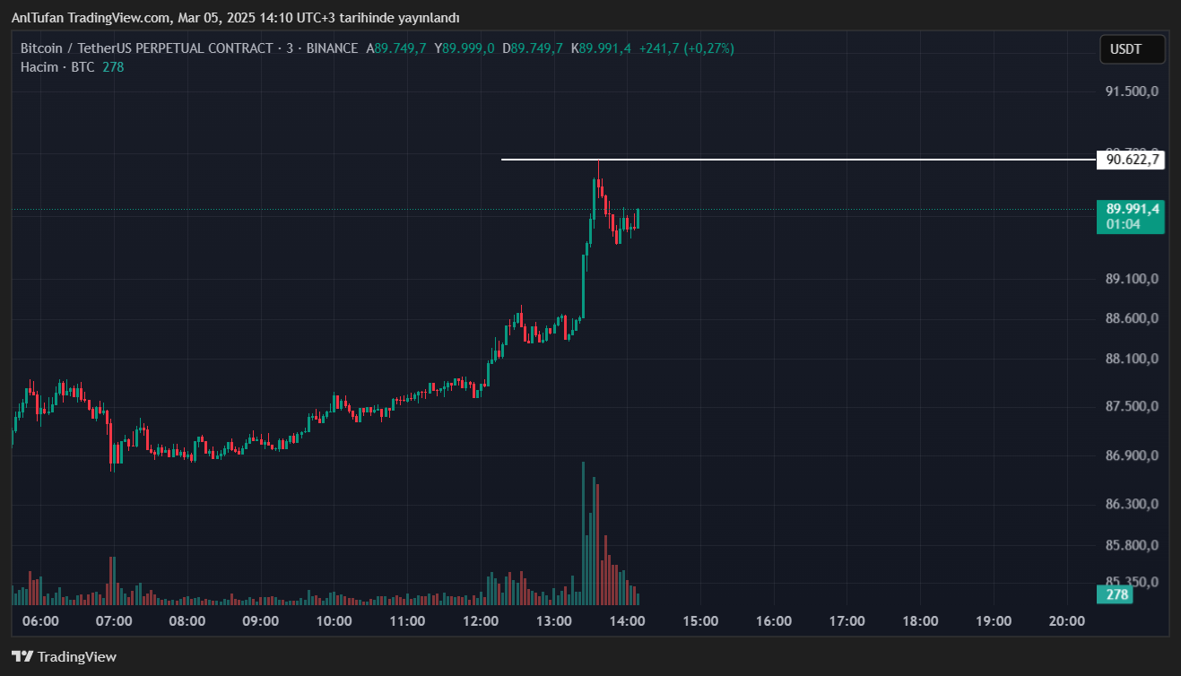Haberimizin yazıldığı esnada 90 bin dolar seviyelerinden işlem gören BTC, ilerleyen süreçte 91 bin doları geri kazanması durumunda tekrardan yeni bir yükseliş trendi başlatabilir.
