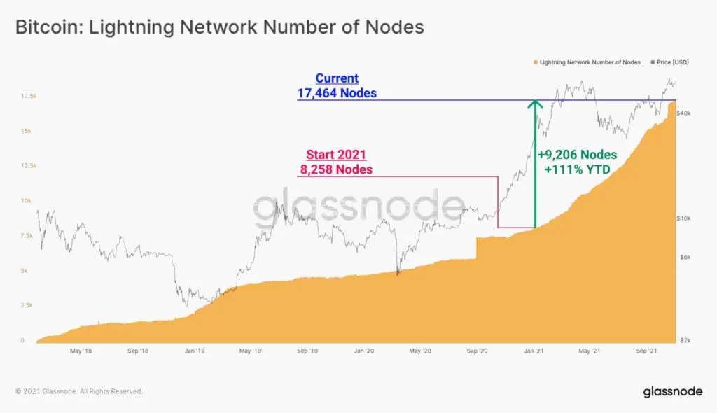 Bitcoin’in yükselişinin en önemli göstergelerinden biri olarak gösterilen Lightning Network düğüm sayısı artmaya devam ediyor. 2021’in ilk on ayında ağa 9.2 binden fazla düğüm eklenmiş durumda.
