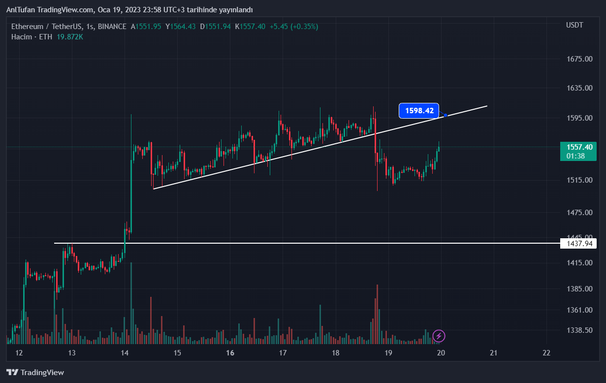 Ethereum’un 1.598 dolar direncini aşması kısa bir süre içerisinde 2 bin dolar major direnç seviyesini hedeflemesini sağlayacaktır. Böyle bir senaryoda ise lider kripto para birimi Bitcoin’in de 23 bin dolara yükselmesi bekleniyor.
