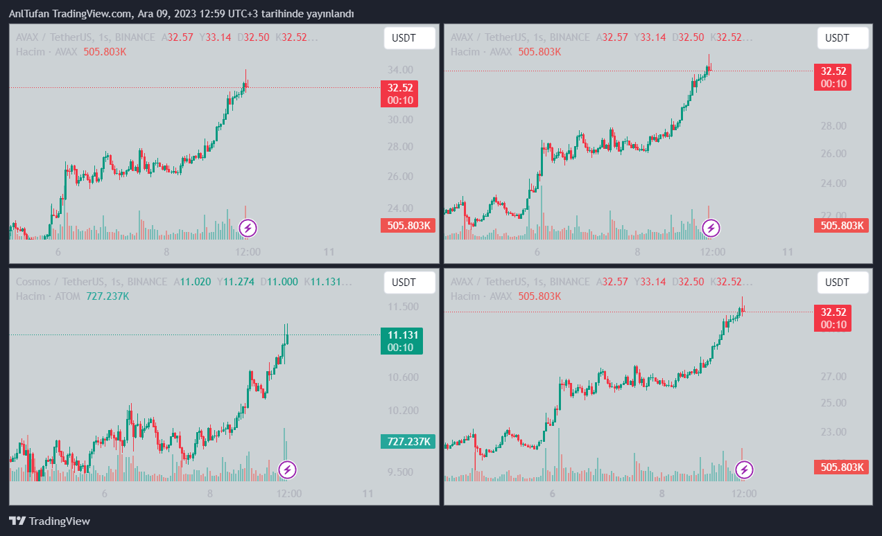 Avalanche (AVAX), Polkadot (DOT), Cardano (ADA) ve Cosmos’un (ATOM) son durumuna baktığımızda, bugün özelinde 4 altcoin’in de ortalama %10’luk yükselişler yaşadığı görülüyor.