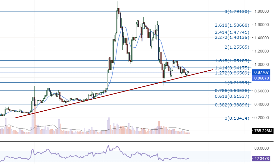 Desteğin kırılması ilk etapta 0,8000 seviyesini gündeme getirebilir. Trend desteğine gelen bu bölgede tutunması kripto para birimi için önemli gözüküyor. 0,8000’in üzerinde tutunamazsa ve trend görünümünden sarkma yaşarsa 0,7200 seviyesi takip edilebilir.