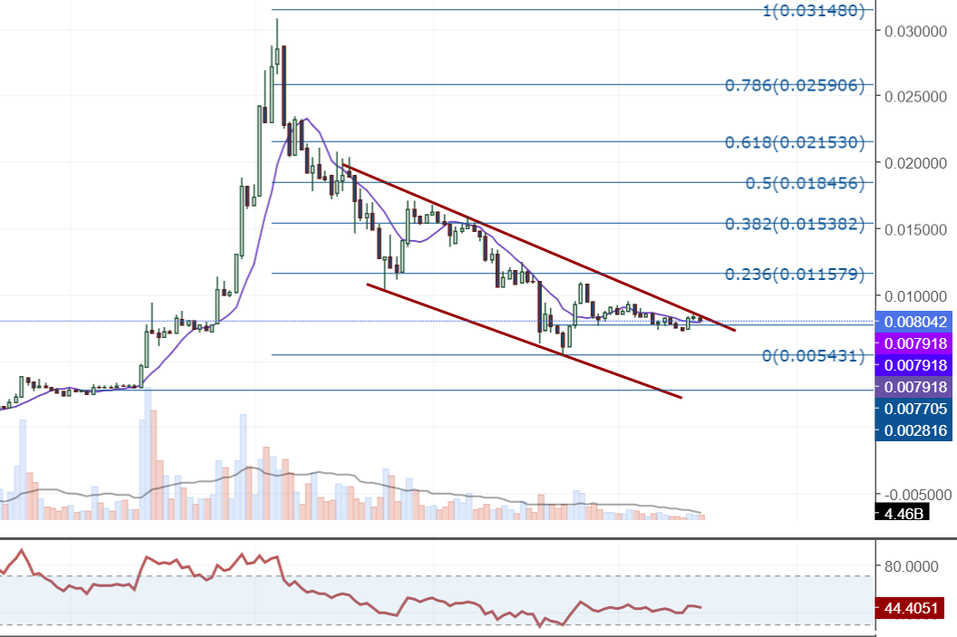 Aşağıda ise 0,0075 seviyesi önemli bir bariyer görevinde. Daha önce bahsettiğimiz bu seviyeyi güçlü bir destek haline getiren HOT/USD alandaki gücünü hacmindeki zayıflık devam ederse koruyamayabilir. Böylelikle daha önce test ettiği dip seviyeyi tekrar gündeme alabilir.