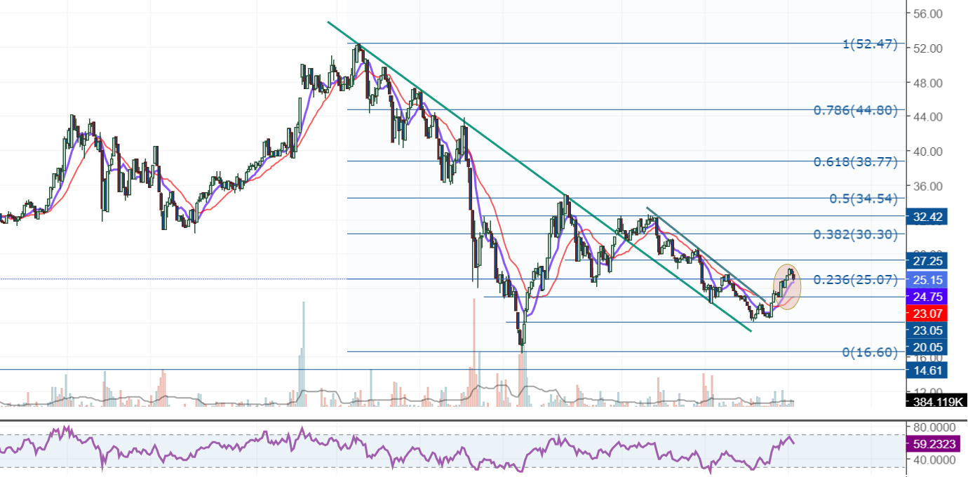 25 seviyesi kırılırsa LINK/USD’de satış baskısı bir miktar derinleşebilir ve ilk etapta 23 desteği test edilebilir. Bölge, 20 MA eksenine tekabül etmesinden dolayı dikkatle izlenmelidir.