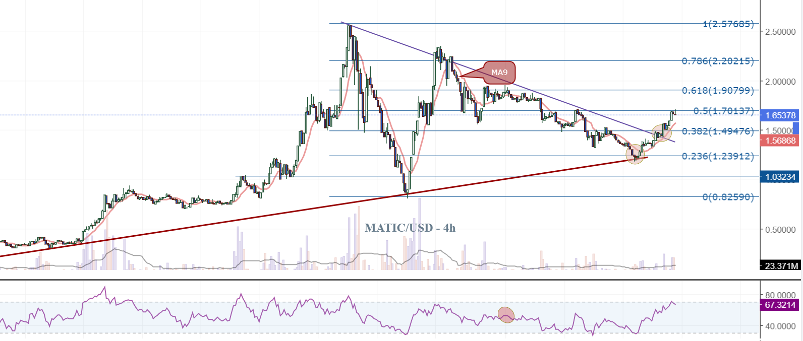 Halihazırda 1.70 direncini test eden MATIC/USD’nin alıcılı seyrini koruması kademeli olarak direnç seviyelerini gündeme getirebilir.