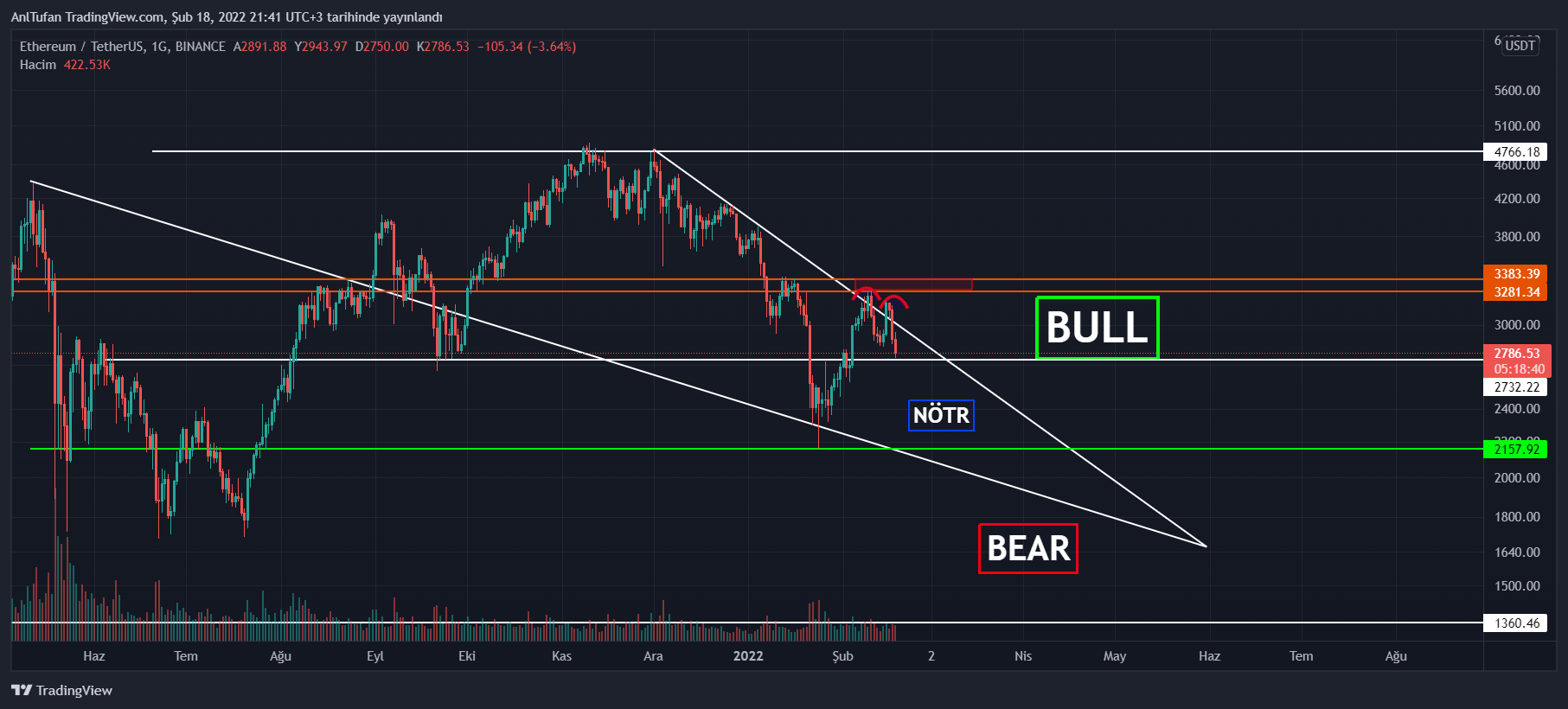 Yayın saati itibariyle 2783 dolar seviyelerinde bulunan Ethereum, bir çok altcoinin oluşturduğu gibi bir 2’li tepe formasyonu oluşturmuş durumda. Kritik destek seviyesi olan 2732 doların üstünde bulunan Ethereum direnmeye devam ediyor.