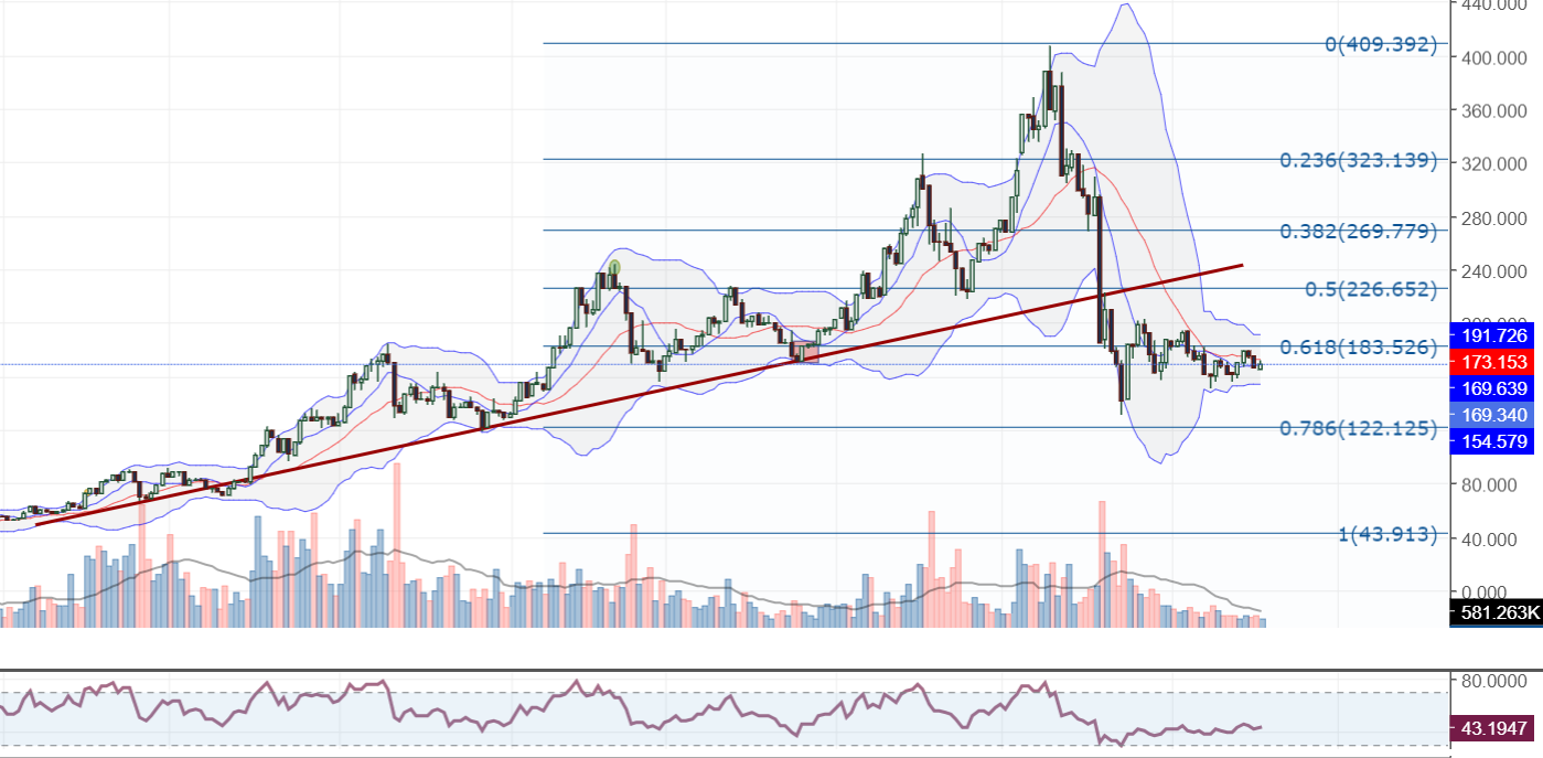 Aşırı satım bölgesinde yatay eksende konumlanan kripto para birimi yeterli alıcı bulamazsa ve 150 desteğini hacimli bir şekilde kırarsa satış baskısı derinleşebilir.