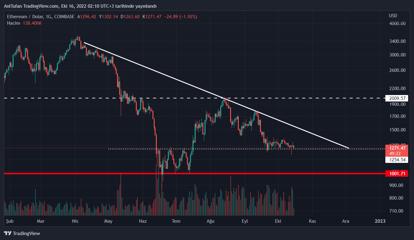Altcoin’lerin ilerleyen günlerde yeni bir çöküş yaşamaması için Ethereum’un (ETH) 1.250 dolar desteğini kaybetmemesi gerekiyor.