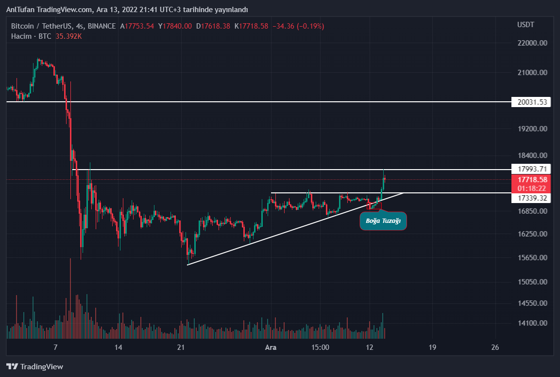 Dün itibariyle her ne kadar Bitcoin major yükselen trendinin altına sarkmış olsa da, boğa tuzağı gerçekleştirerek tekrardan trendin üzerine çıktığı görüldü.
